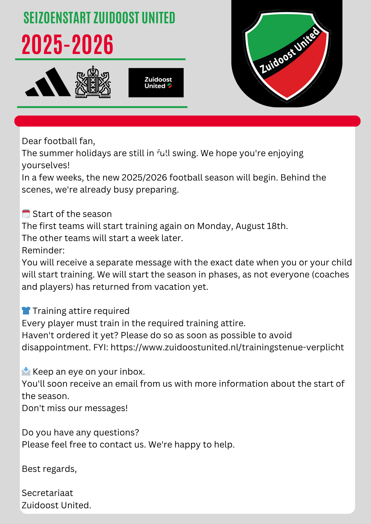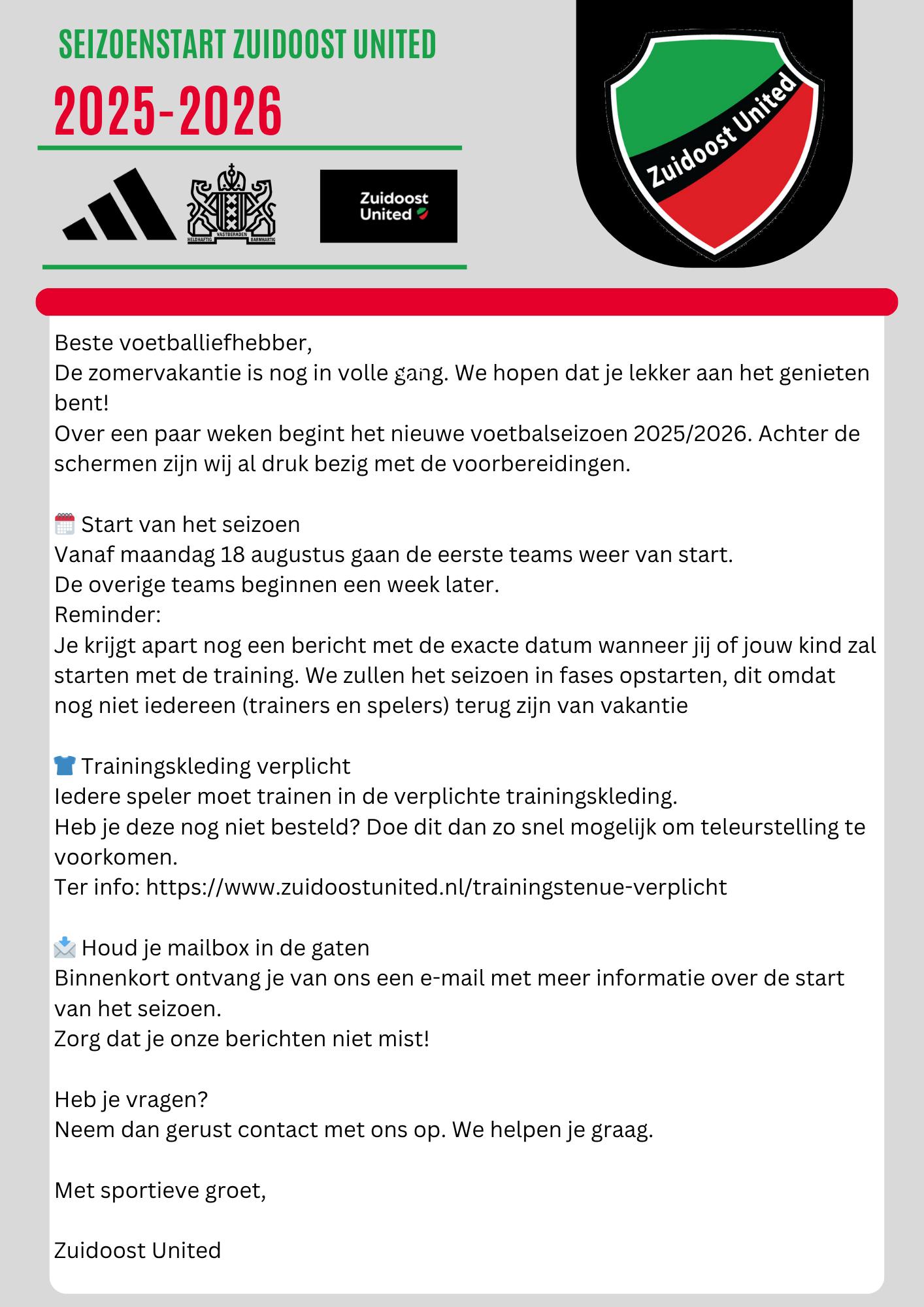 Start seizoen 2025-2026